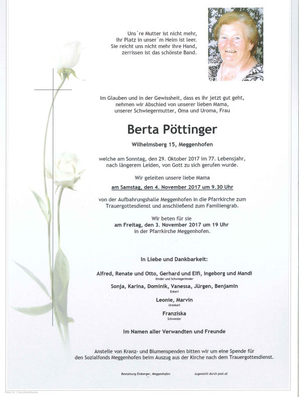 Berta Pöttinger Full size 595 × 789 pixels Previous imageMargarethe Wagner Next imageHeinrich Gugerbauer Schreibe einen Kommentar Antwort abbrechenDu musst angemeldet sein, um einen Kommentar abzugeben.
